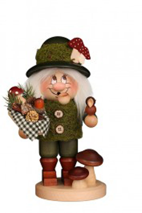 Unser Moosmann ist so sehr mit der Natur verbunden, das sogar seine Kleidung aus natürlichen Stoffen besteht. Fleißig sammelt er die Früchte des Waldes und der kleine Vogel auf seiner Hand begleitet Ihn dabei.